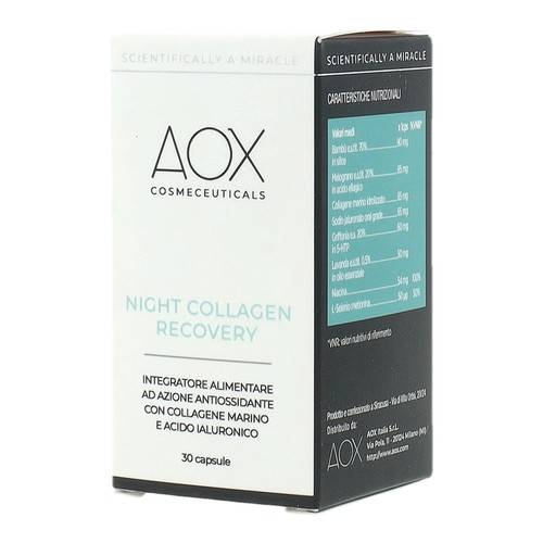 AOXNIGHT COLLAGEN RECOVERY Descrizione Integratore alimentare a base di melograno, estratto ad azione antiossidante, con collagene marino e acido ialuronico, con estratti vegetali che favoriscono il rilassamento e il normale tono dell’umore. Ingredienti Ingredienti bambù (Bambusa bambos L. V... Leggi tutto