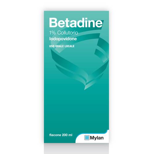 Non usare per trattamenti prolungati: l'uso specie se prolungato puo'dare origine a fenomeni di sensibilizzazione. In tal caso, il trattamento deve essere interrotto e deve essere effettuata una valutazione clinica. Particolare cautela va usata in pazienti con preesistente insufficienza renale che necessitino di regolari applicazioni di Betadine su superfici lese, data l'eliminazione prevalentemente renale. L'ingestione o l'inalazione accidentale di alcuni disinfettanti puo' avere conseguenze gravi, talvolta fatali. E' necessario prestare attenzione incaso di uso orofaringeo per evitare l'inalazione di Betadine 1% collutorio attraverso il tratto respiratorio poiche' puo' provocare complicazioni come polmonite. Cio' puo' verificarsi particolarmente in pazienti intubati. Evitare il contatto con gli occhi. Particolare cautela e'richiesta nelle pazienti in gravidanza e in allattamento. In tali casideve essere eseguita una valutazione del rapporto rischio/beneficio elo iodopovidone deve essere somministrato solo se strettamente necessario (vedere paragrafo 4.6). L'utilizzo a lungo termine dello iodopovidone per gargarismi deve essere evitato nelle donne in gravidanza e nelle madri che allattano (vedere paragrafi 4.6 e 5.2). I pazienti con gozzo, noduli tiroidei o altre patologie tiroidee acute e non acute sono a rischio di sviluppare iperfunzione tiroidea (ipertiroidismo) a seguito di somministrazione di grandi quantita' di iodio. Non usare almeno 10 giorni prima di effettuare una scintigrafia o dopo scintigrafia con iodio radioattivo oppure nel trattamento con iodio radioattivo delcarcinoma tiroideo. Evitare il contatto con gioielli, in particolare articoli contenenti argento. Popolazione pediatrica: in eta' pediatricausare solo sotto stretto controllo e nei casi di effettiva necessita'. La popolazione pediatrica ha maggior rischio di sviluppare ipotiroidismo, a seguito di applicazioni di dosi elevate di iodio. A causa della permeabilita' deli tessuti e della loro elevata sensibilita' allo iodio, l'uso di iodopovidone deve essere ridotto al minimo indispensabile nei bambini. Puo' essere necessario un controllo della funzione tiroidea del bambino (ad esempio, livelli di T4 e TSH). Qualsiasi ingestione orale di iodopovidone da parte del bambino deve essere evitata. Informazioni importanti su alcuni eccipienti Betadine 1% Collutorio contiene meno di 1 mmol (23 mg) di sodio per 20 ml di collutorio, cioe' essenzialmente 'senza sodio'. Betadine 1% Collutorio contiene 681,88 mg di alcol (etanolo) in 20 ml di collutorio. La quantita' in 20 ml di questo medicinale e' equivalente a meno di 18 ml di birra o 8 di vino. Lapiccola quantita' di alcol in questo medicinale non produrra' effettirilevanti.