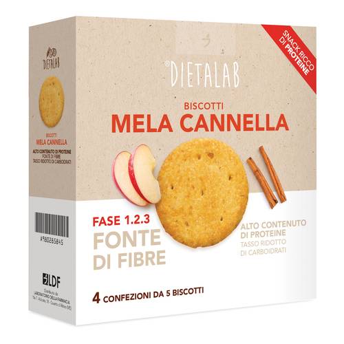 DIETALAB Biscotti Mela CannellaDescrizione Snack ad alto contenuto di proteine, tasso ridotto di carboidrati e fonte di fibre. Biscotti alla mela e alla cannella. Ingredienti Proteine del latte; olio di palma; farina di grano; zucchero; glutine di grano; amido di grano; mele disidrat... Leggi tutto