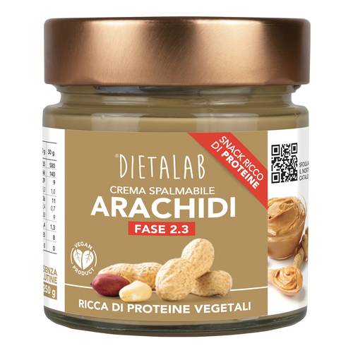 DIETA LABCREMA SPALMABILE ARACHIDIDescrizione Crema spalmabile alle arachidi. Fonte di proteine vegetali, a basso contenuto di zuccheri. Ingredienti Arachidi (35%), maltitolo, proteine di pisello, olio di girasole alto oleico, fibra vegetale, lecitina di girasole. Senza glutine. C... Leggi tutto