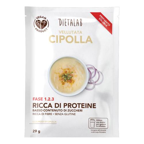 DIETALAB VELLUTATA CIPOLLADescrizione Vellutata alla cipolla. Ingredienti Proteine di soia, proteine di pisello, aromi ( sedano), cipolla in pezzi ( anidride solforosa e solfiti), gomma tara, fibra solubile da mais, cloruro di sodio, biossido di silicio, L-metionina, L-fenilalanina, L-tr... Leggi tutto
