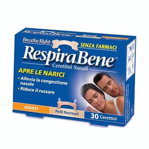 RespiraBenePelli Normali Dispositivo Medico CE. I cerottini nasali RespiraBene, se correttamente applicati sulla superficie del naso, attraverso una semplice azione meccanica e senza l’ausilio di medicinali, permettono immediatamente di respirare meglio. Ogni cerottino nasale è infatti costit... Leggi tutto