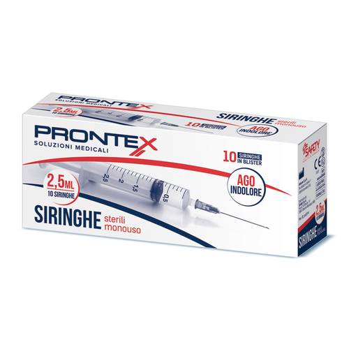 PRONTEX SIRINGHE 2,5 e 5 ml Descrizione La siringa Prontex è progettata, ingegnerizzata e prodotta secondo parametri di alta qualità, sicurezza e facilità d'uso. I materiali, la conformazione delle posizioni di fine corsa e la calibrazione tra cilindro, pistone e gommino determinano la perf... Leggi tutto